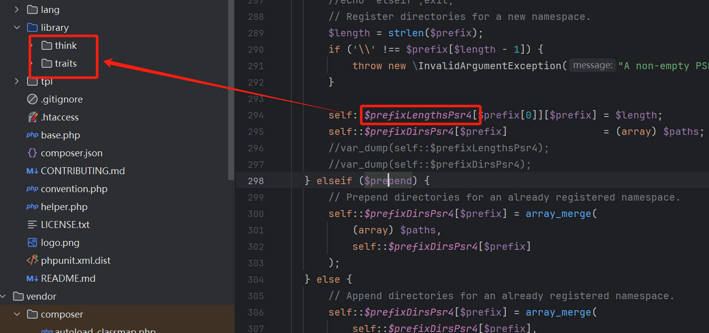 因为删掉之后他就会走下面的逻辑也就是查找PSR-4,在走下面这个逻辑的时候可以打个断点调试一下看看输出什么