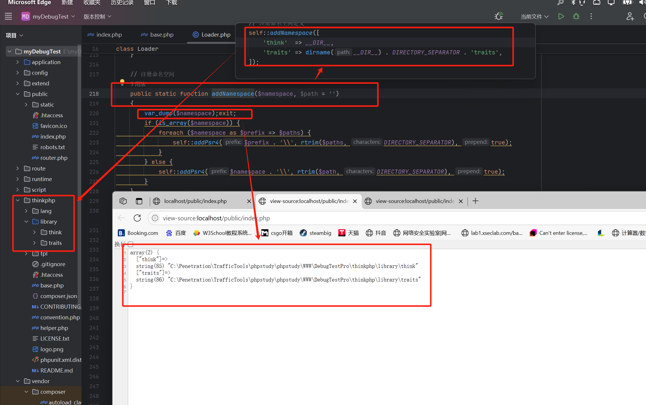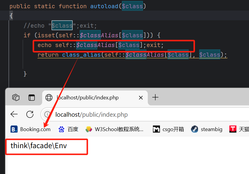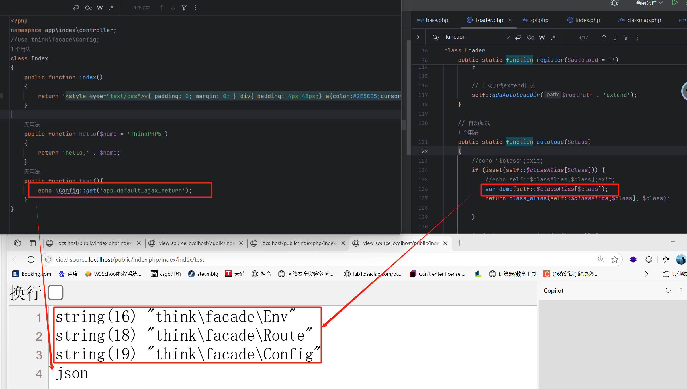 当然既然这是可以利用别名来输出的话可以将上面的使用某具体文件注释,下面的Config前面加一个反斜杠就可以,要不然会认为实在app\insex\controller中,这也是利用命名空间去做,然后Loader.php中找到自动加载那一段,使用var_dump打印出来看看是不是找到的Config这个类