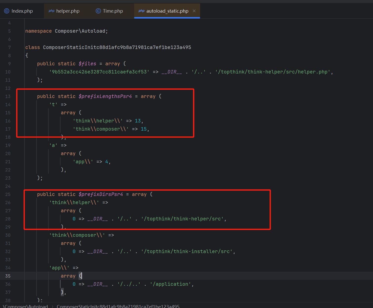 当然打印出来后最下面有个类“Composer\Autoload\ComposerStaticInitc88d1afc9b8a71981ca7ef1be123a495”