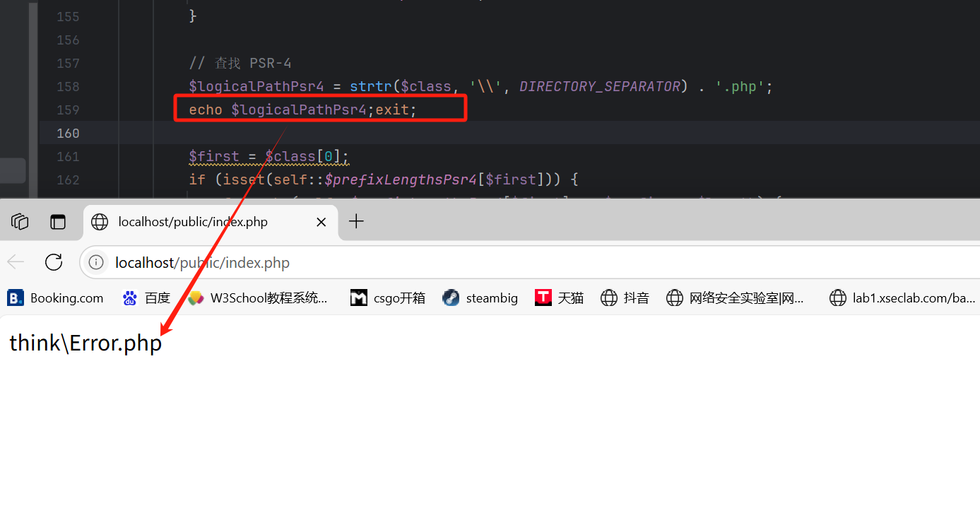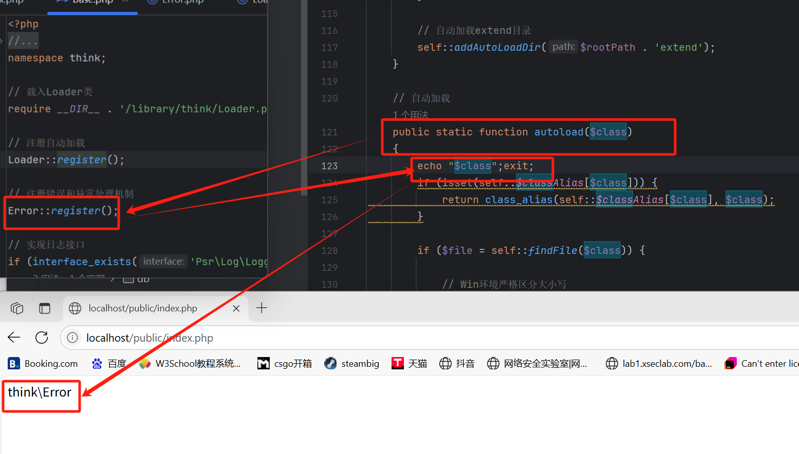 上面可以看到输出的是think目录下的error.php,那$class就是error