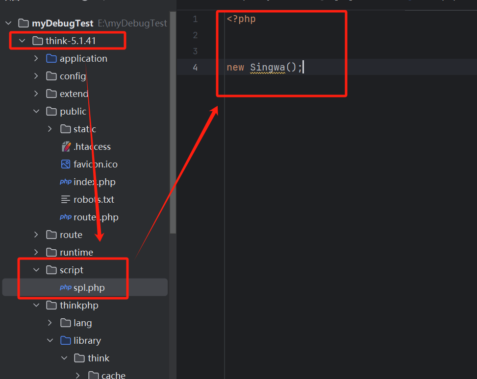 先在根目录下创建一个文件夹然后里面创建一个spl.php的文件里面写入一个不存在的类,当然肯定会报错