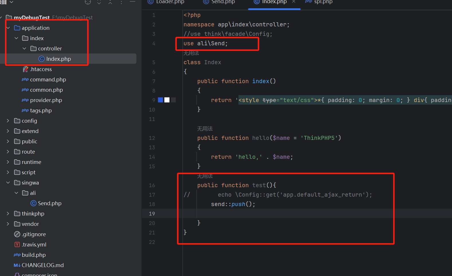 Send.php的内容以及index.php的内容不动,改的是Loader.php的注册命名空间那