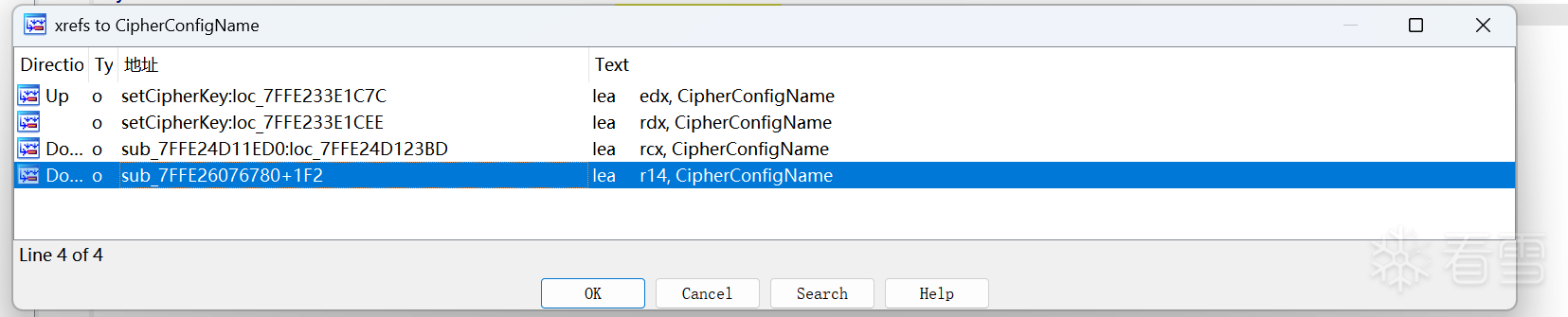 这时候我们可以搜索字符串定位到CipherConfigName的地址。