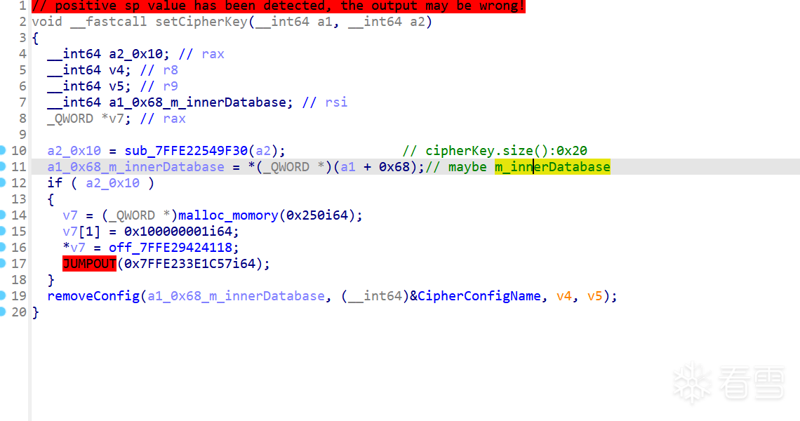 对于反汇编的伪代码和源代码可以初步定位到setCipherKey。