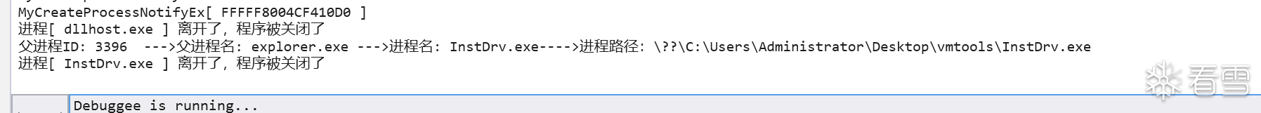DbgPrintEx(77,0,"进程[ %s ] 离开了,程序被关闭了", ProcName);
