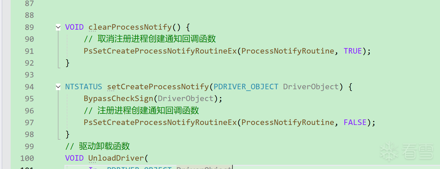 PS_CREATE_PROCESS_NOTIFY_ROUTINE 类型,它定义了当创建新进程时应该调用的函数。 - Remove:一个布尔值,如果设置为TRUE,则表示要移除之前注册的回调函数;如果设置为FALSE,则表示注册一个新的回调函数