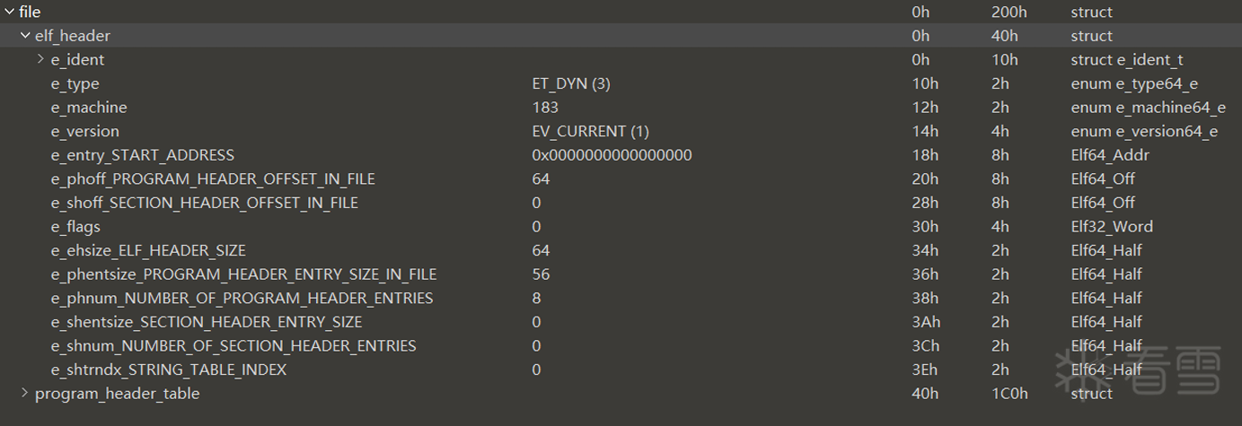 将Section header table 的所有项的值都置为0;主要是修复Program header table 各项的值;