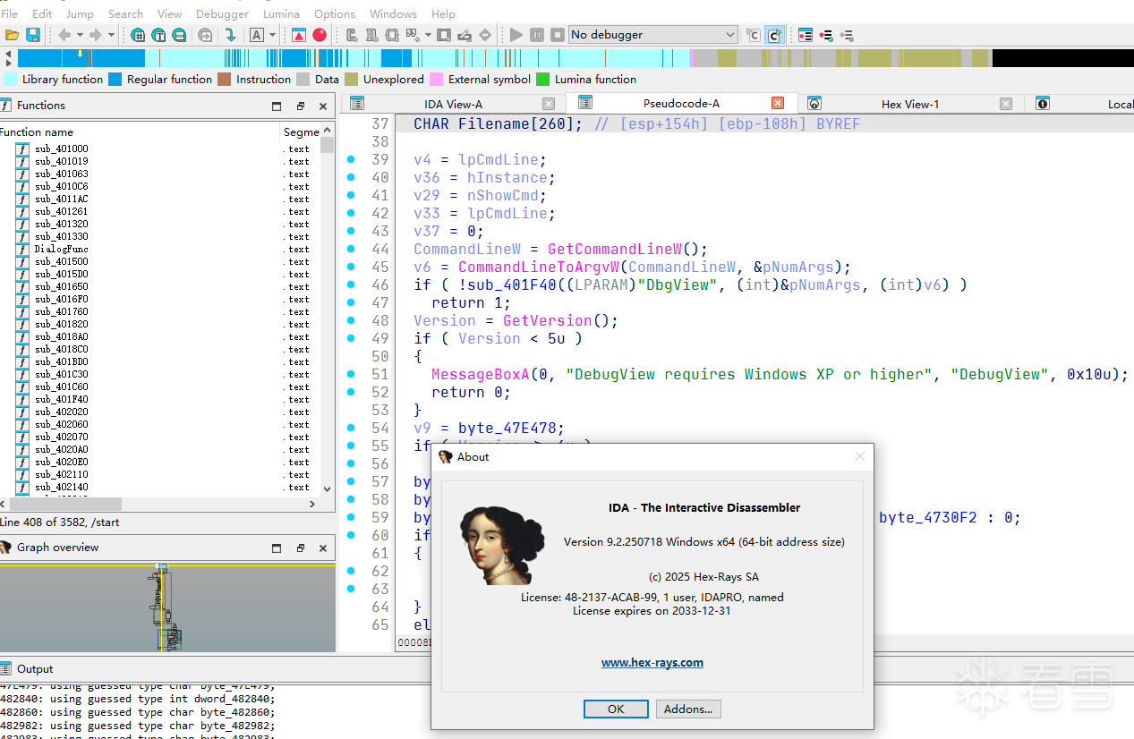 {"header":{"version":1},"payload":{"email":"idapro9@example.com","licenses":[{"add_ons":[{"code":"HEXX86","end_date":"2033-12-31 23:59:59","id":"48-1337-0000-01","owner":"48-2137-ACAB-99","start_date":"2024-08-10 00:00:00"},{"code":"HEXX64","end_date":"2033-12-31 23:59:59","id":"48-1337-0000-02","owner":"48-2137-ACAB-99","start_date":"2024-08-10 00:00:00"},{"code":"HEXARM","end_date":"2033-12-31 23:59:59","id":"48-1337-0000-03","owner":"48-2137-ACAB-99","start_date":"2024-08-10 00:00:00"},{"code":"HEXARM64","end_date":"2033-12-31 23:59:59","id":"48-1337-0000-04","owner":"48-2137-ACAB-99","start_date":"2024-08-10 00:00:00"},{"code":"HEXMIPS","end_date":"2033-12-31 23:59:59","id":"48-1337-0000-05","owner":"48-2137-ACAB-99","start_date":"2024-08-10 00:00:00"},{"code":"HEXMIPS64","end_date":"2033-12-31 23:59:59","id":"48-1337-0000-06","owner":"48-2137-ACAB-99","start_date":"2024-08-10 00:00:00"},{"code":"HEXPPC","end_date":"2033-12-31 23:59:59","id":"48-1337-0000-07","owner":"48-2137-ACAB-99","start_date":"2024-08-10 00:00:00"},{"code":"HEXPPC64","end_date":"2033-12-31 23:59:59","id":"48-1337-0000-08","owner":"48-2137-ACAB-99","start_date":"2024-08-10 00:00:00"},{"code":"HEXRV64","end_date":"2033-12-31 23:59:59","id":"48-1337-0000-09","owner":"48-2137-ACAB-99","start_date":"2024-08-10 00:00:00"},{"code":"HEXARC","end_date":"2033-12-31 23:59:59","id":"48-1337-0000-10","owner":"48-2137-ACAB-99","start_date":"2024-08-10 00:00:00"},{"code":"HEXARC64","end_date":"2033-12-31 23:59:59","id":"48-1337-0000-11","owner":"48-2137-ACAB-99","start_date":"2024-08-10 00:00:00"}],"description":"license","edition_id":"ida-pro","end_date":"2033-12-31 23:59:59","features":[],"id":"48-2137-ACAB-99","issued_on":"2024-08-10 00:00:00","license_type":"named","owner":"HexRays","product":"IDA","product_id":"IDAPRO","product_version":"9.1","seats":1,"start_date":"2024-08-10 00:00:00"}],"name":"IDAPRO9"},"signature":"A560F1EAB76B326FD3F34FD31D60A7F89AC71D3184FA7CED86CE7144DD56064B50A5352B6C21100C788B68666941421988CFE743736C5C2AD3A02AA937043AF3DCBEF099A3EE696D7A41985BDEB922E98D26F4E9B3A166D299CD4994AF04395FCD3C8A4DEF3C298894609B3C5FB9A677F2E5C2AEDF34CEA59C0AB069B7D82F67"}
