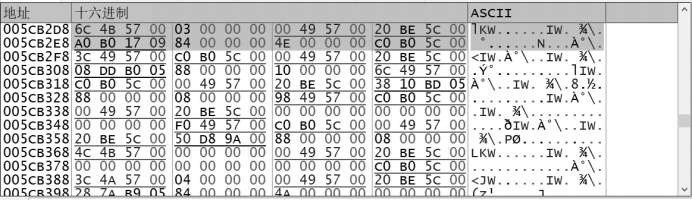 在本案例中,存储全局变量的基地址在e.exe+1CB2D8,其内存如图 13所示。