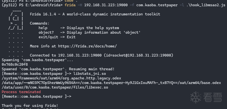 我把我手机的__dl__ZN6soinfo17call_constructorsEv 改了,我的目标测试app,.init_proc 和JNI_LOAD 地址和你的是一样的,但是 -U -f 启附加了脚本,依旧会退出, Bypassed sub_14400 [+] Fake JNI_OnLoad called! ........ Process terminated