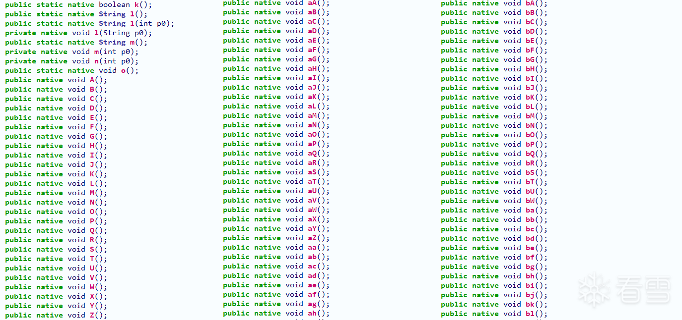 这种加固一般是将app中代码全部加固,少的几百个方法,多的上千个方法被加固。有些在同一个类中就加固了二百多个方法。