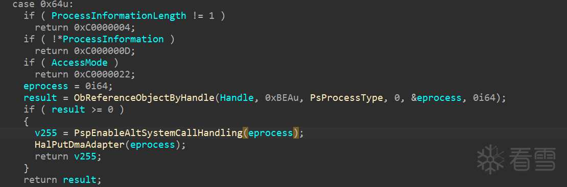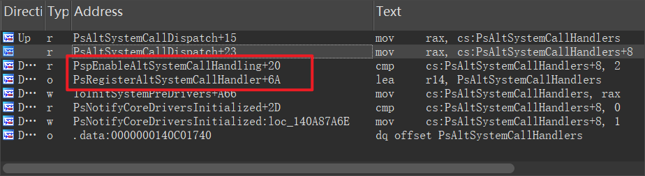 会发现里面竟然从PsAltSystemCallHandlers地址处拿指针并执行(_guard_dispatch_icall就是个检查一下指针然后call过去)。
