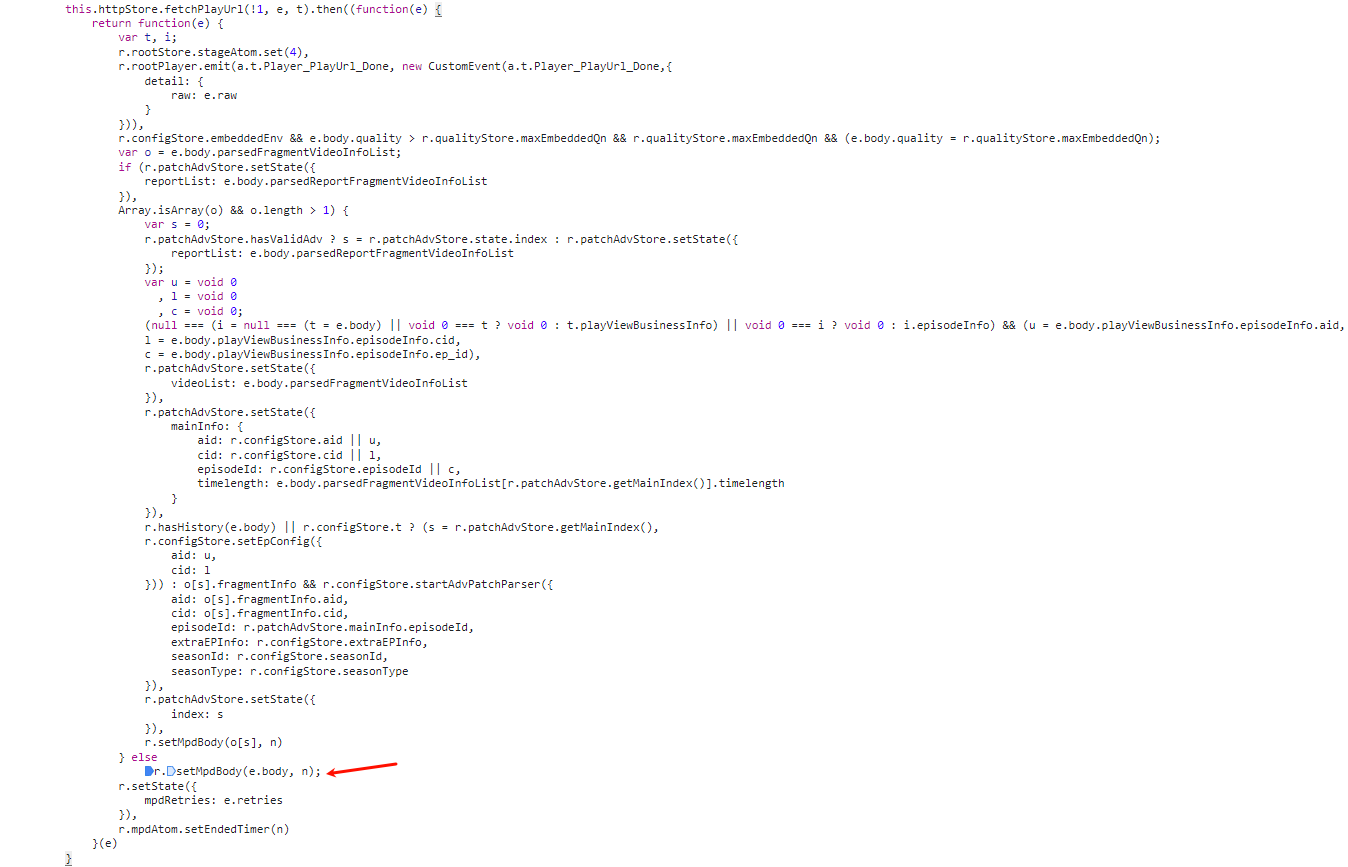 在请求结果处理函数中,我们注意到有一个 setMpdBody 的函数,很明显是用于设定 Mpd 元信息的函数
