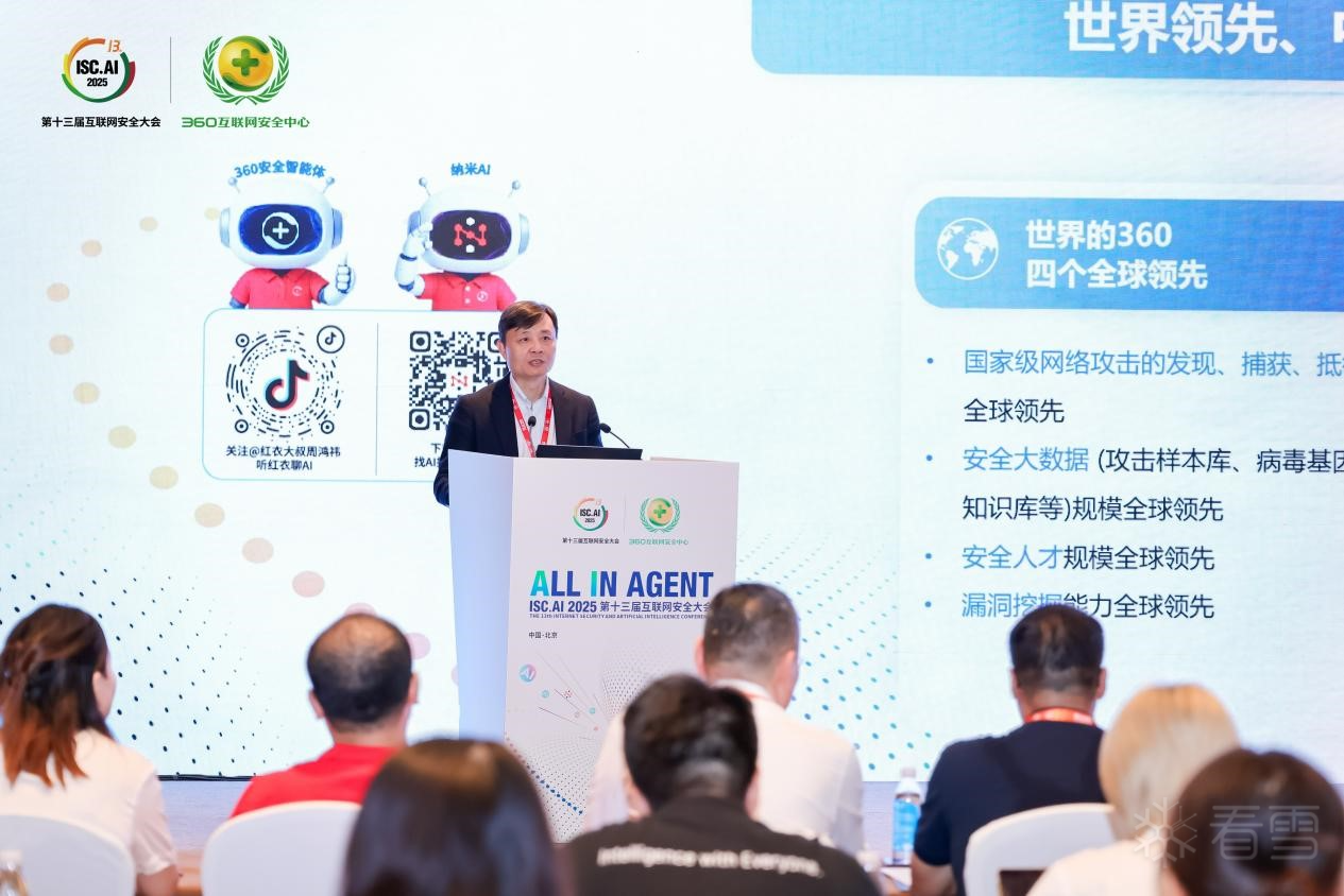 在开场致辞环节中,360集团首席运营官叶健表示,数字安全领域的对抗形态正经历深刻演变:从最初的人与人的对抗,逐步升级为组织间对抗,进而发展为国家级对抗,而未来必将演变为AI与AI、智能体与智能体之间的技术博弈。他强调,360始终将实战能力置于首位,依托全球超过15亿终端用户和200万家企业客户的深厚积累,不仅提供安全服务,更通过AI工具赋能企业数字化转型。这一庞大的用户基础与实战经验,为生态合作伙伴构建了坚实的客户资源和场景验证平台。