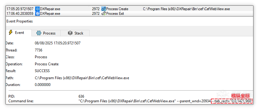 展示锁屏广告: 随后通过 webstub.dll 间接创建 cefwebview.exe 程序,并传入参数 url(网页地址)与 tab_rect(横纵坐标)设置为全屏大小,从而实现全屏展示锁屏广告,其中进程 cefwebview.exe 是 Chromium Embedded Framework (CEF) 的内核,可在独立窗口中渲染指定 URL 网页内容。