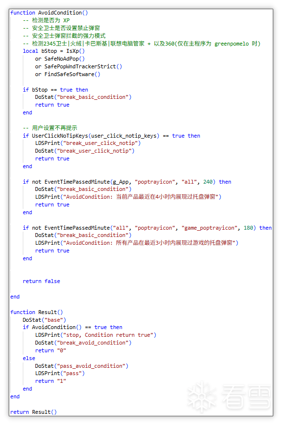 3. 规避安装的部分推广软件、规避卡巴、火绒、2345 卫士安全软件,但是注释掉了腾讯管家和金山毒霸(部分脚本会注释)。