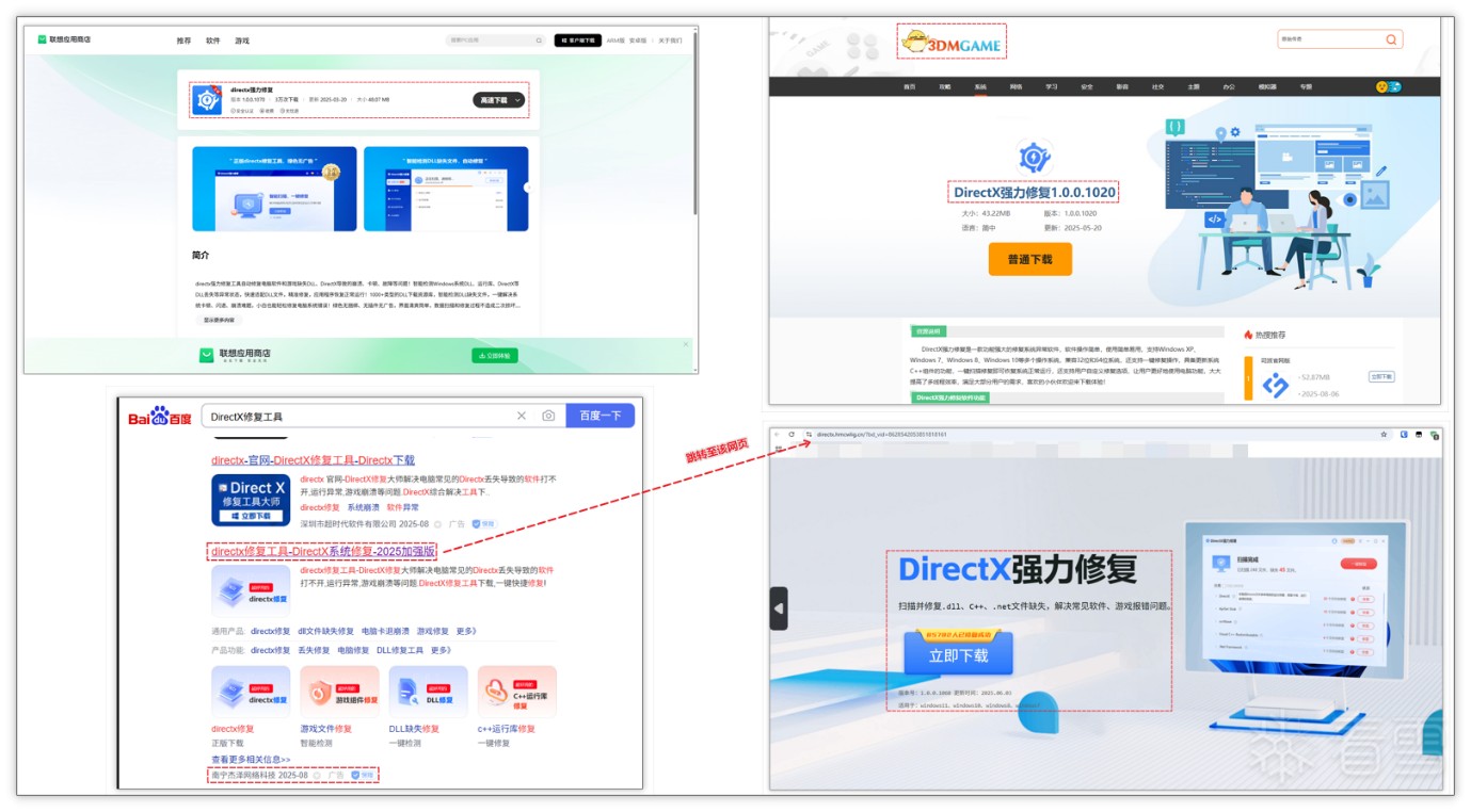 市面上可以下载该软件主要通过三个渠道,分别为联想商店、3DM 以及百度竞价推广。