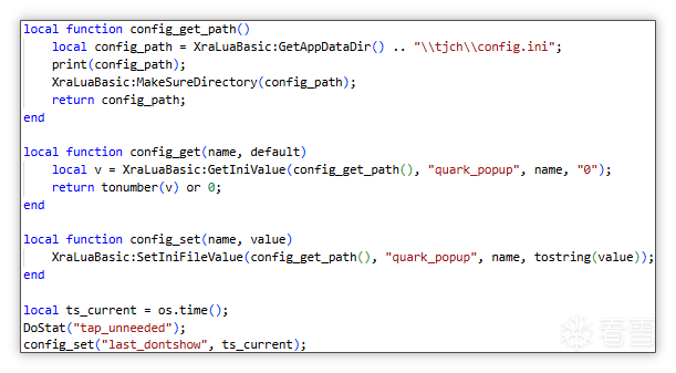 Lua 脚本弹窗: 随后开始执行 Lua 脚本,该系列脚本都是静默安装后通过弹窗 30 秒(或任意秒)让用户交互一下,其中只有当用户在 30 秒或任意时间内点击“我不需要”(btn_dontshow) 时才会删除静默安装的内容。