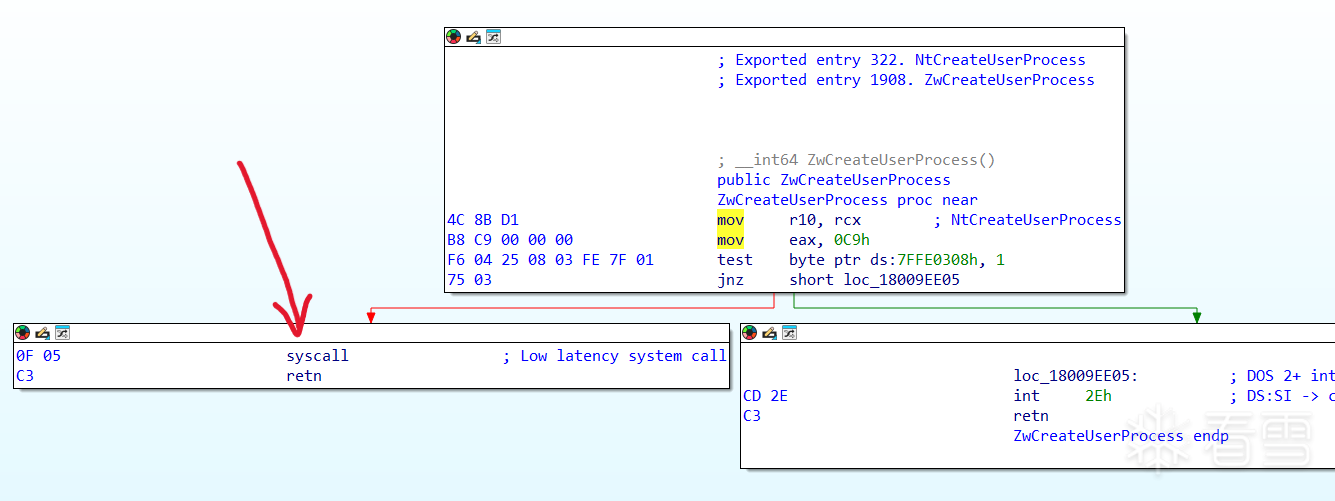 在3环,所有的非gui的win32 api最终都会进入ntdll,这个dll包含了一系列进入0环的入口函数,以syscall指令结尾(系统调用号存储在r10中),这类函数最终就会调用0环的函数从而完成某些目的。