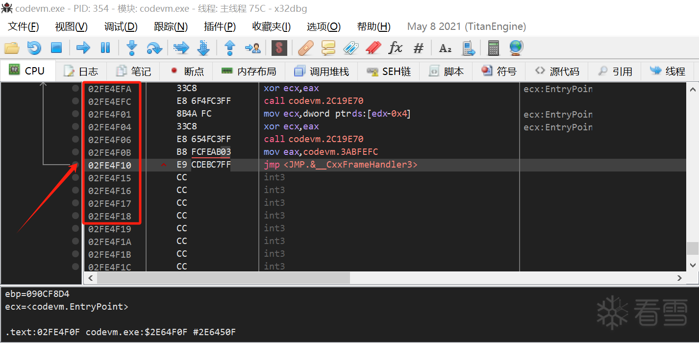 好像没有看到2FE4F0F这个地址, 只有2FE4F10? 是把该位置改为nop吗?