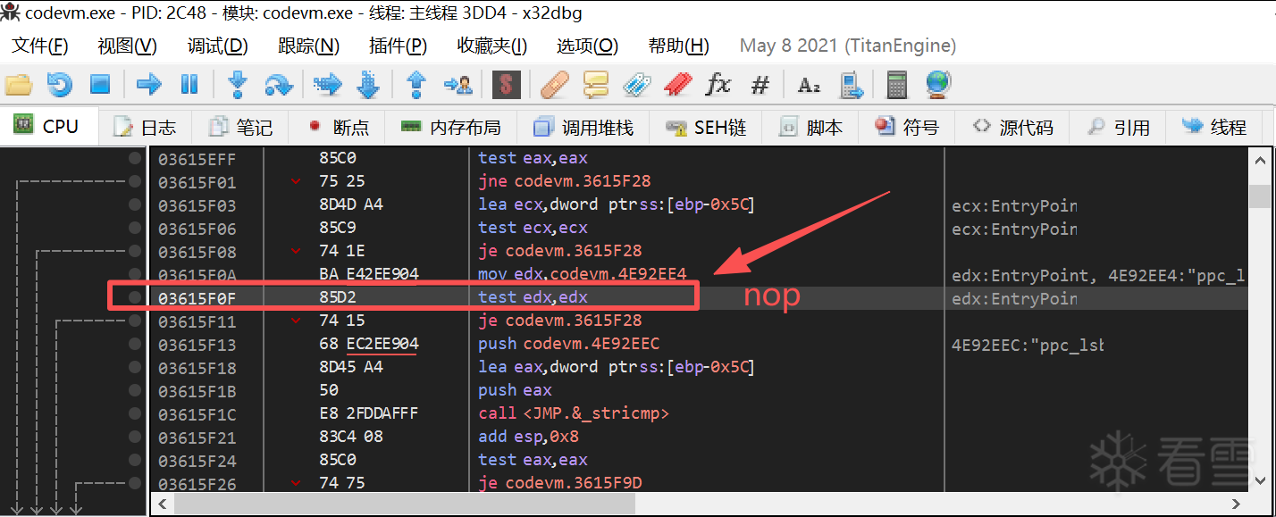 // 第一个修改点:将0x2FE4F0F处的74 0A改为90 90