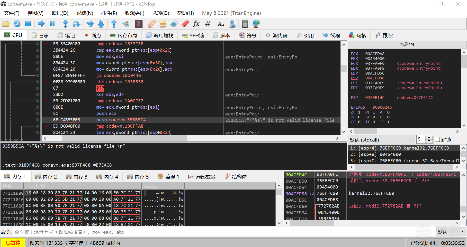 尝试着用大白制作补丁,但是用x32_dbg没有找到正确的入口,找不到要patch的地方。大白制作的补丁不起作用,反复试了很多次,patch的地方都不对,比较困惑。