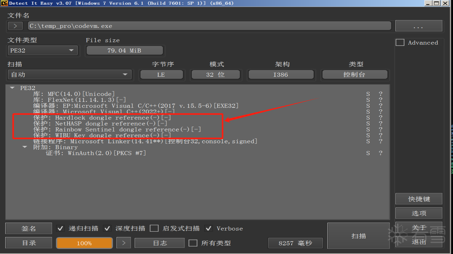 下面是用DIE查看主程序看到的结果