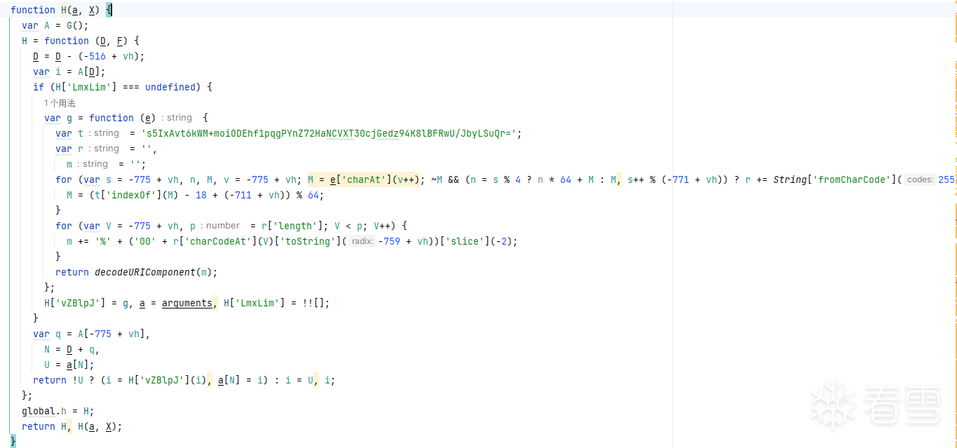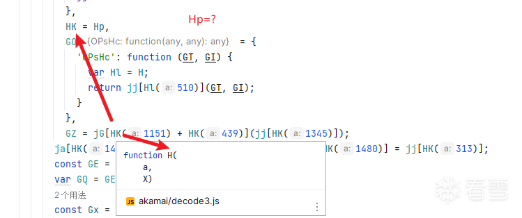 实际代码的逻辑无非是比如var kk=H,...,var su=kk,...,var Hp=su,...,var HK=hp这样下来的.我们要做的就是使用ast,在作用域内向上溯源,一直溯源到最顶点的H函数.