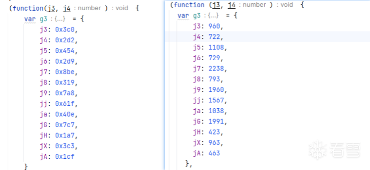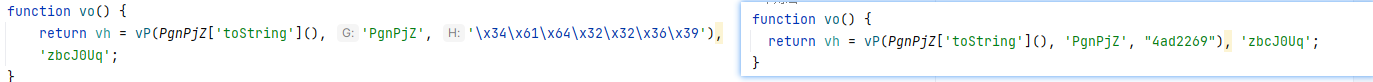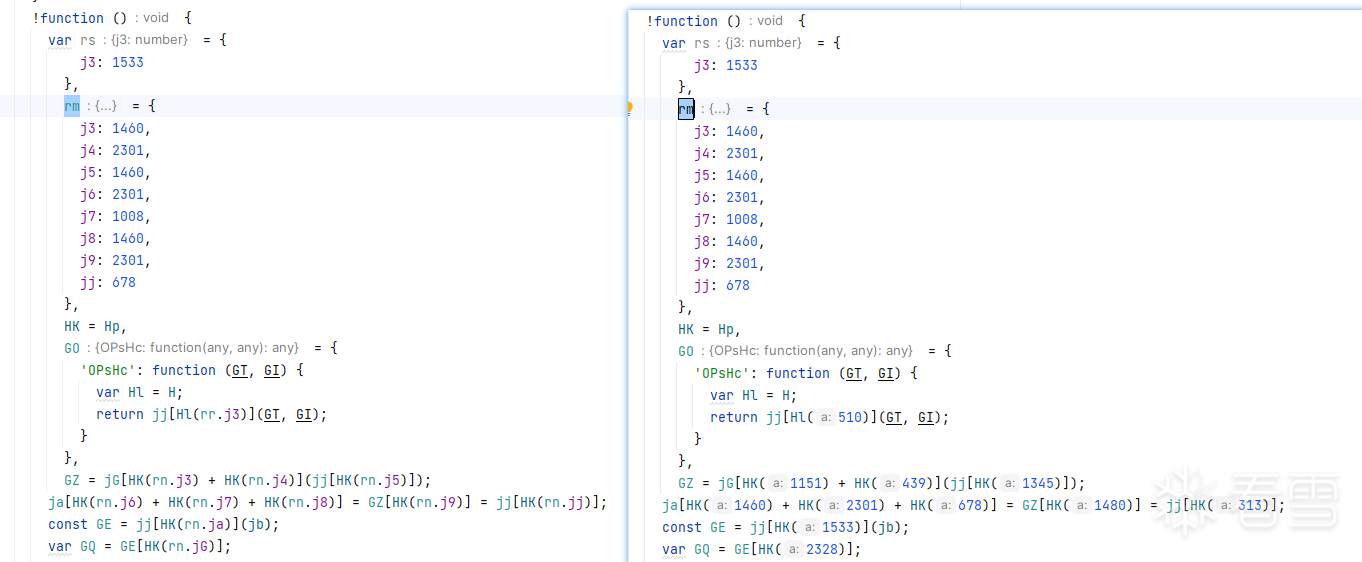 执行ast替换后得到的是如下面对比图效果.