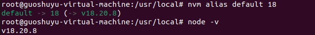 执行命令:nvm alias default 18 避免每次重启终端需重新切换