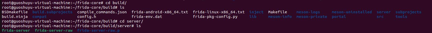 然在在~/frida-core/build目录可以看到生成的frida-server