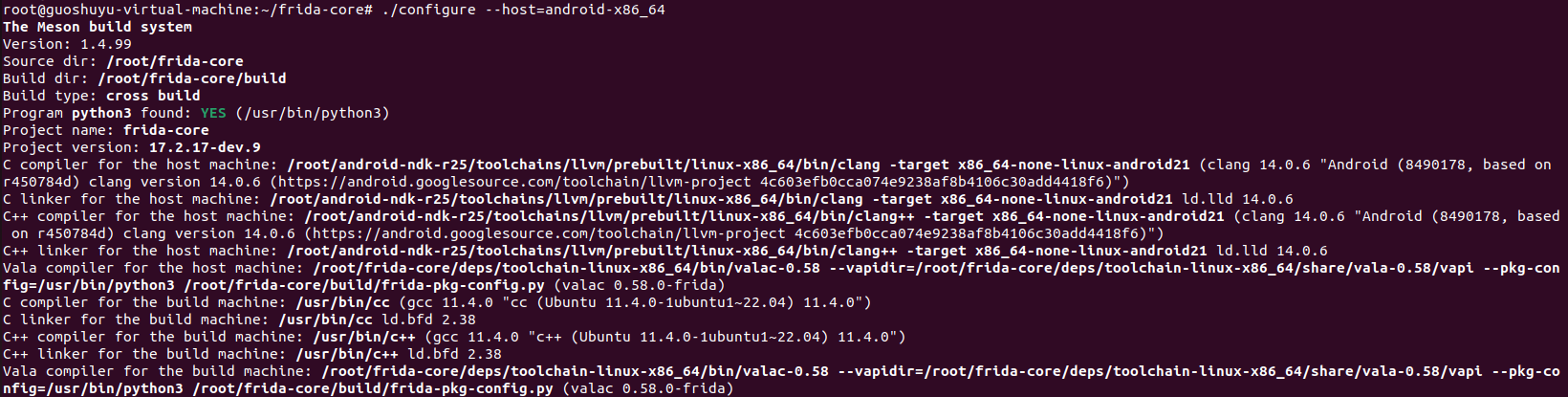 在~/frida-core目录下,执行命令:./configure --host=android-X86_64