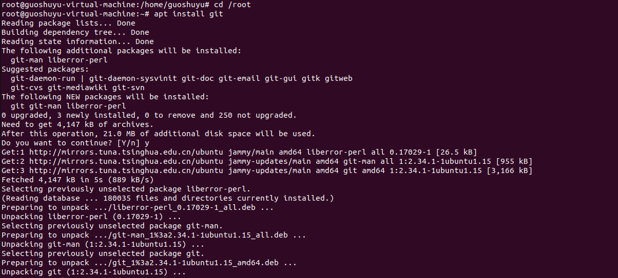 在~目录下执行命令:apt install git