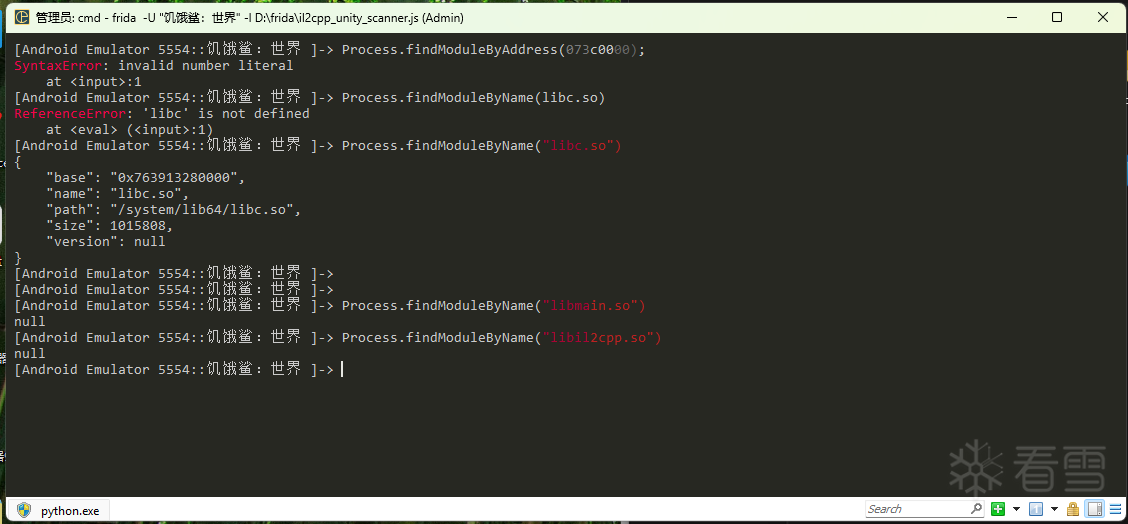 未解决 [求助]雷电9模拟器中frida 17.2.16找不到已经加载的so 10雪币
