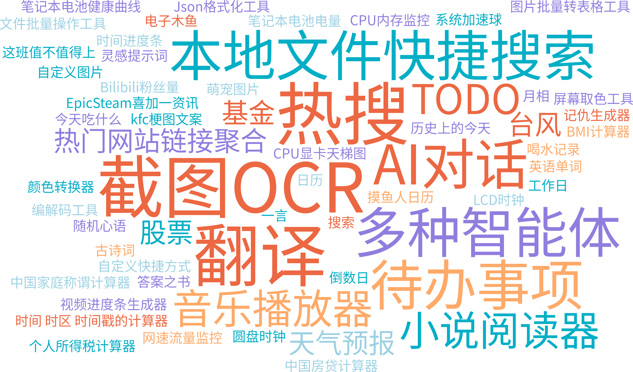 拥有海量卡片,可以自定义卡片布局,隐藏到侧边需要使用时弹出(可以鼠标或快捷键唤出)