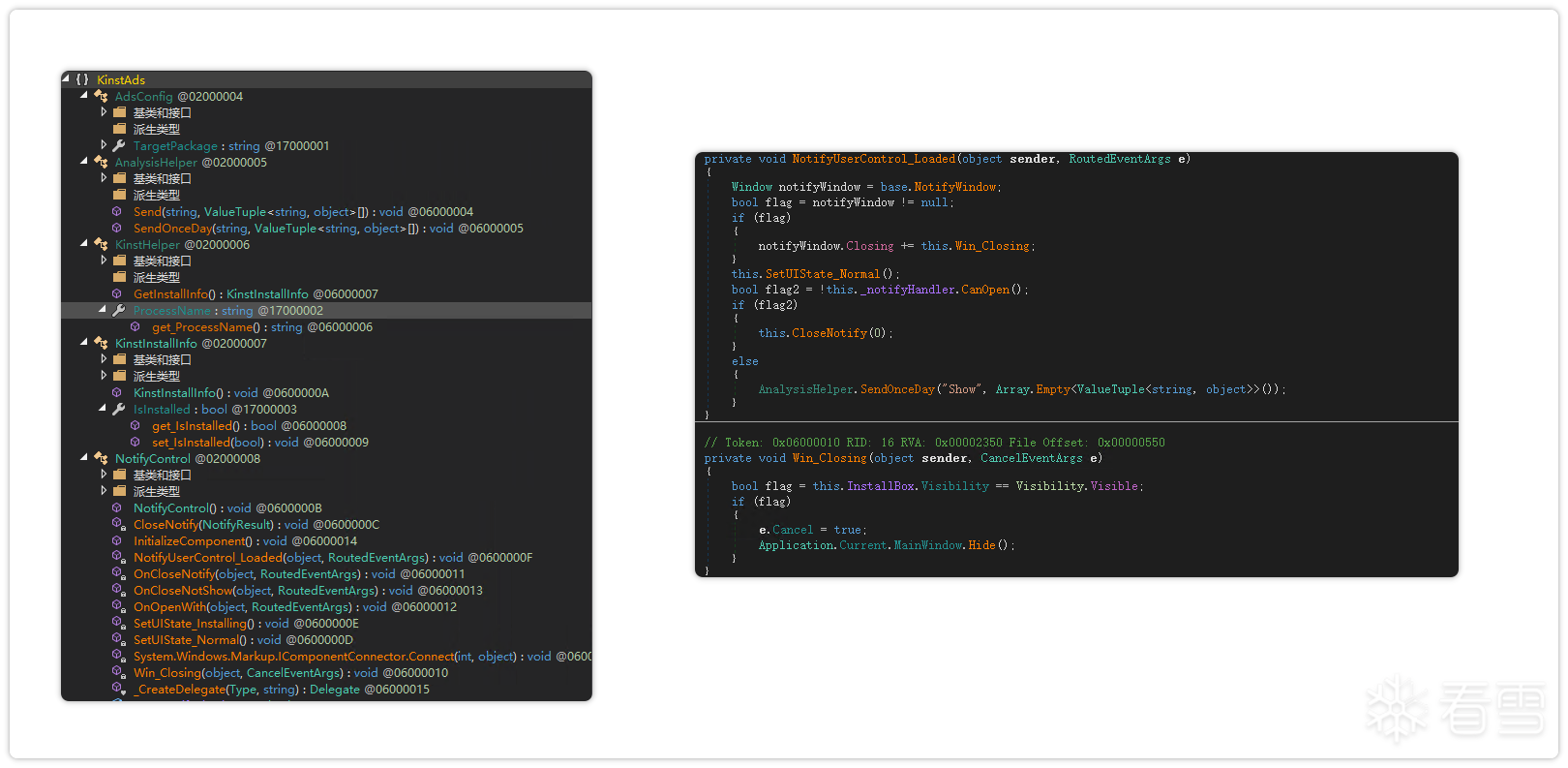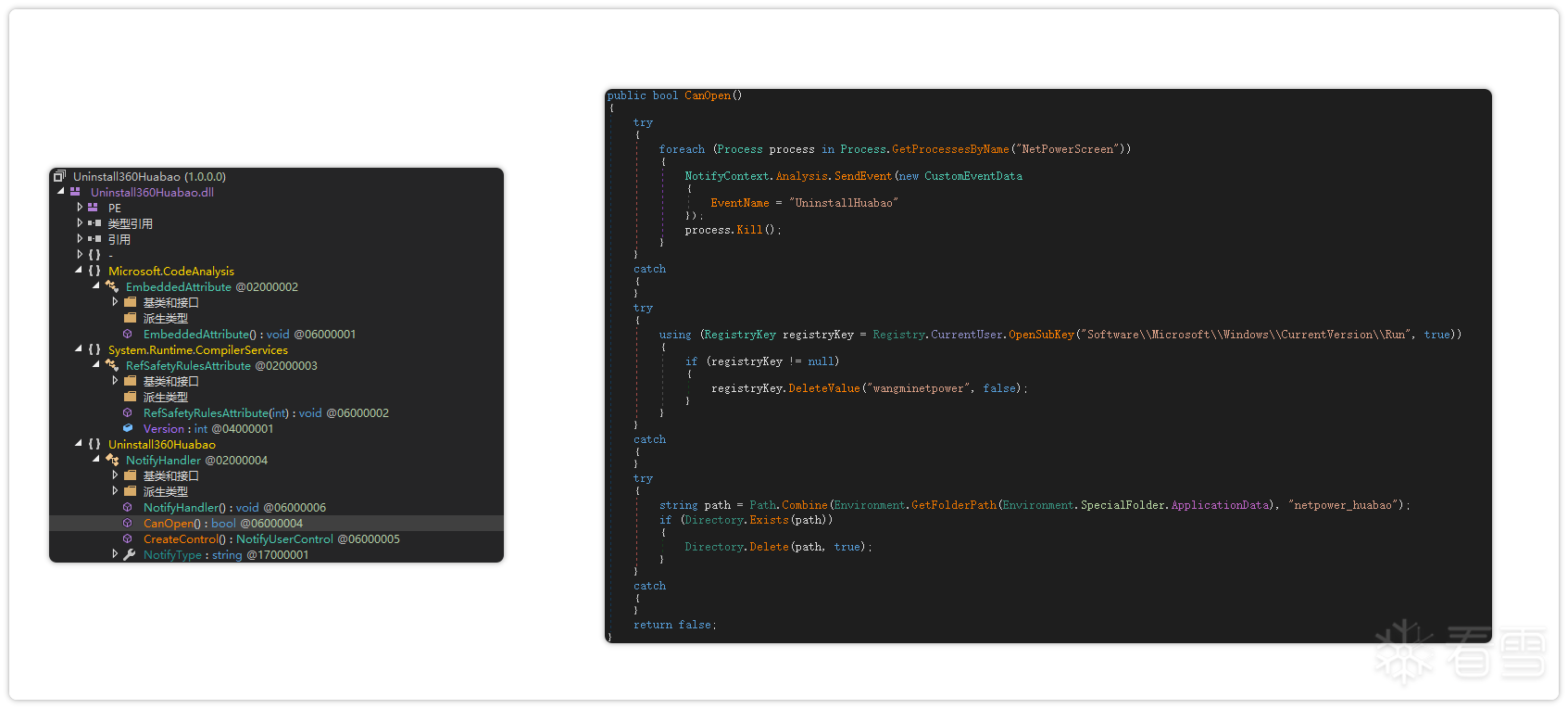 对下载的云端插件(.NET DLL)深入分析发现,其主要功能是投放广告弹窗,涉及的推广包括:WPS、金山毒霸、右键菜单插件、CAD看图引流插件、打印机引流插件、具备卸载 360画报(netpower_huabao) 作用的插件等。