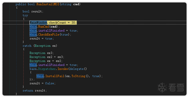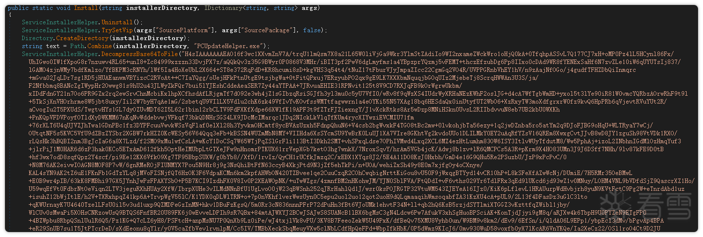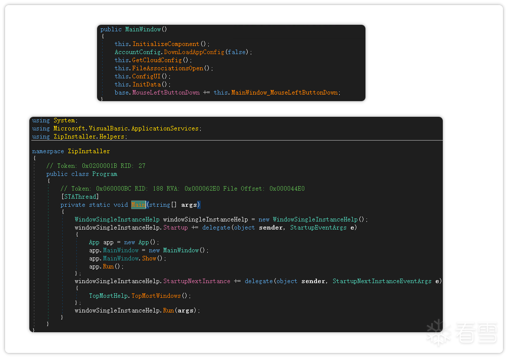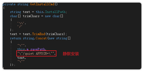 该样本采用 C# 开发,初始版本为一个简单的下载器(Loader),主要功能是从阿里云存储桶中获取安装包,并通过命令行实现静默安装压缩包的功能。