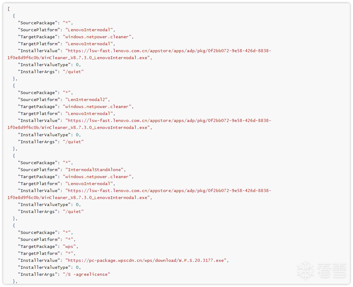 (3)0TargetPackage = wps → 下载 WPS 办公软件安装包,并执行静默安装 (使用参数 /S -agreelicense 自动同意协议)。