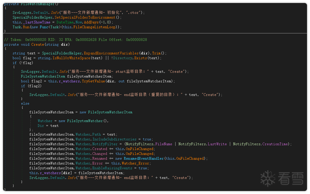 在 Start 函数中,服务会创建一个线程。该线程持续进行两项监测: