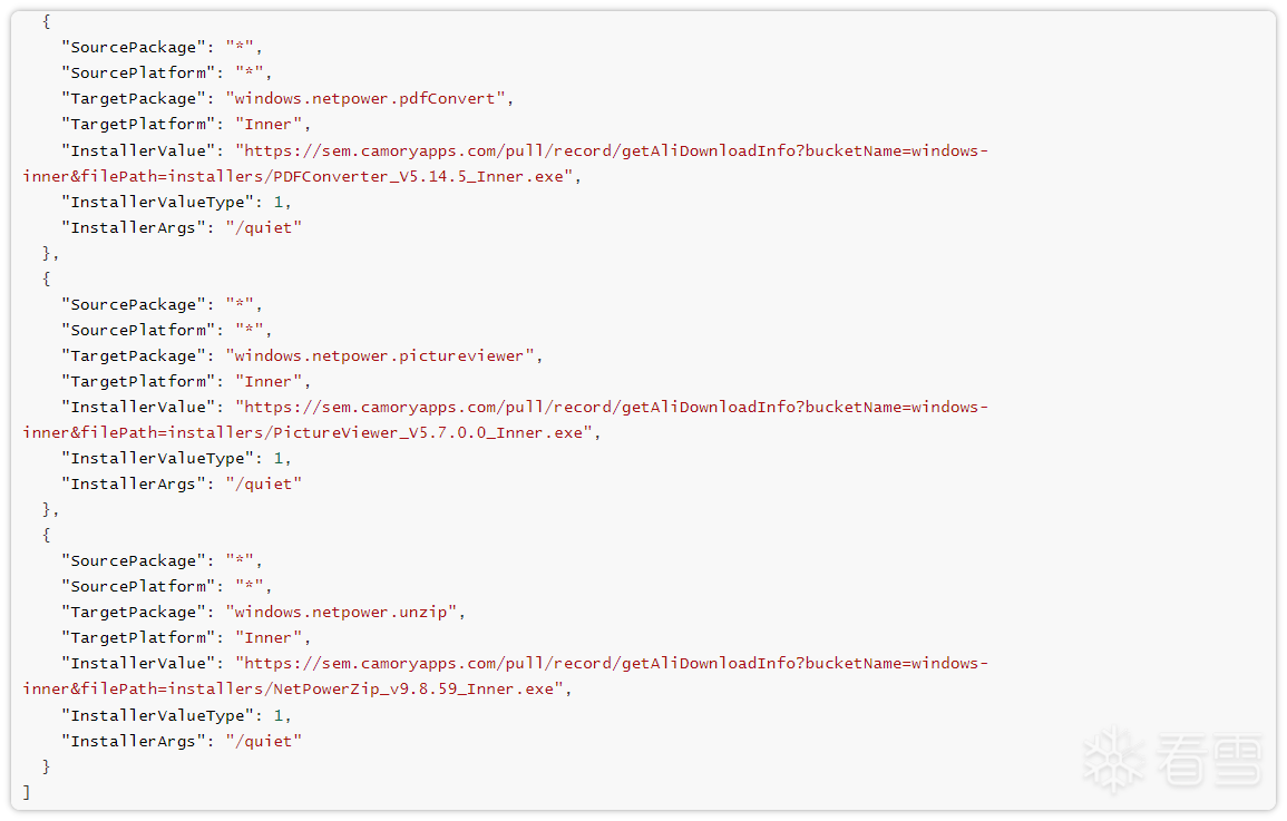 (6)TargetPackage = windows.netpower.cleaner / pdfConvert / pictureviewer / unzip → 下载指定工具软件安装包 (例如:WinCleaner、PDF 转换器、图片查看器、压缩工具),并执行静默安装 (使用参数 /quiet)。