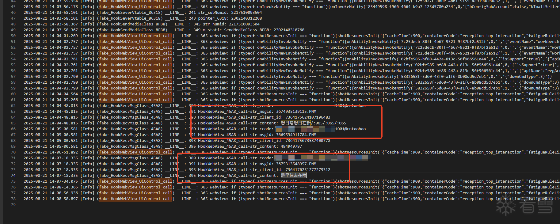 这点不同于以前的低版本,不使用js注入的情况下,不是一个完整的json信息,只包含ccode、消息内容、消息id、客户端id等,而且非接待客户,977版本不需要单独调用接口去查询
