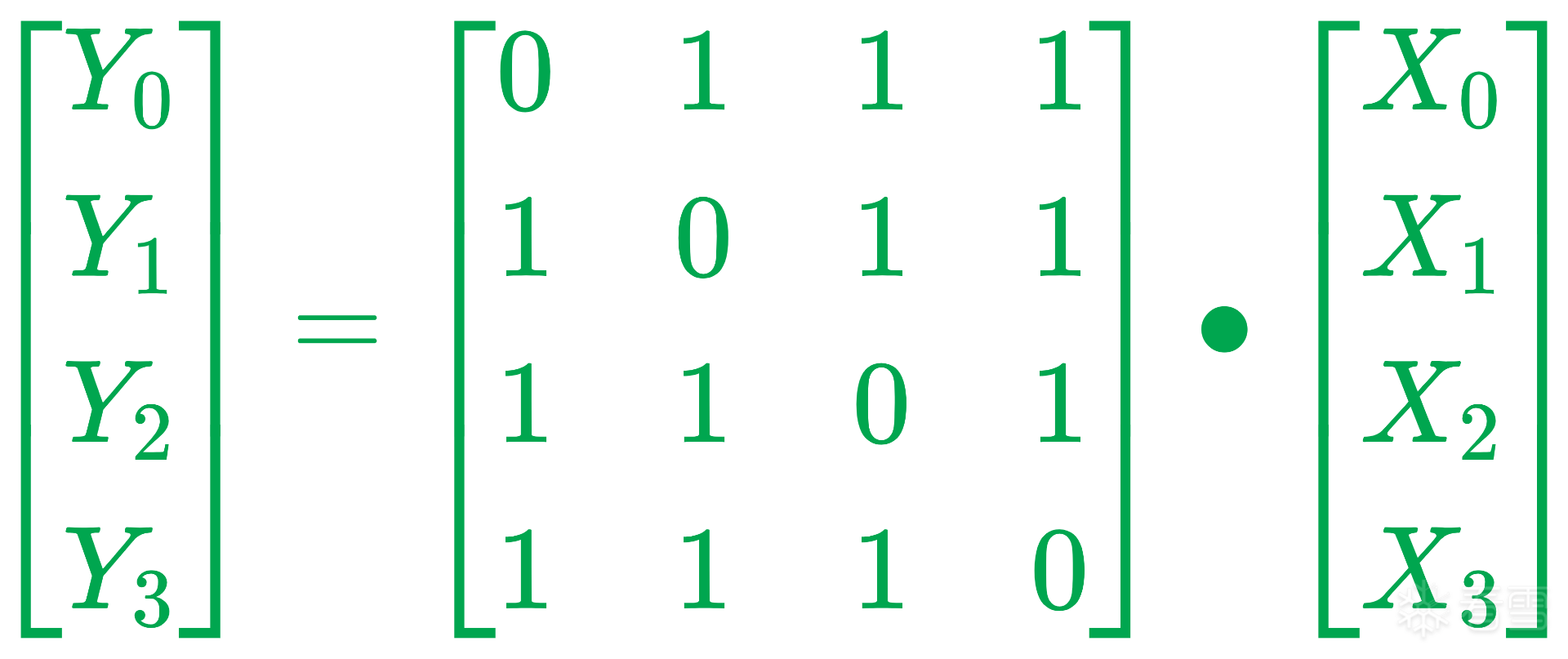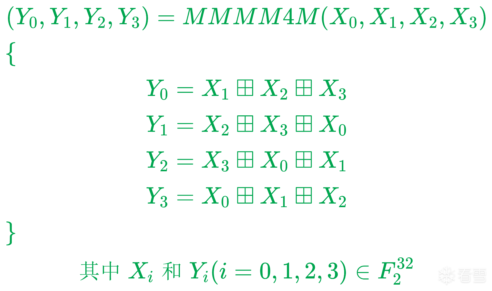 由F=C⊕D=MMMM4X(A)⊕MMMM4X(B)=MMMM4X(A⊕B)=MMMM4X(E)可得: