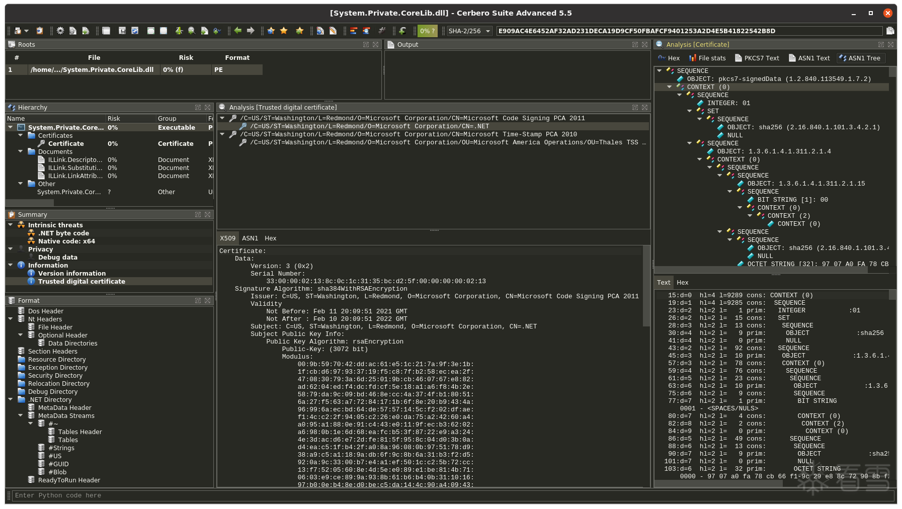 自 Cerbero Suite 5.5 版本和 Cerbero Engine 2.5 版本起,我们已全面支持各类证书格式。虽然此前 Cerbero Suite 已允许您检查二进制文件内的证书,但现在您可以直接从磁盘加载证书文件,并能够逐个查看每一个 ASN.1 对象。