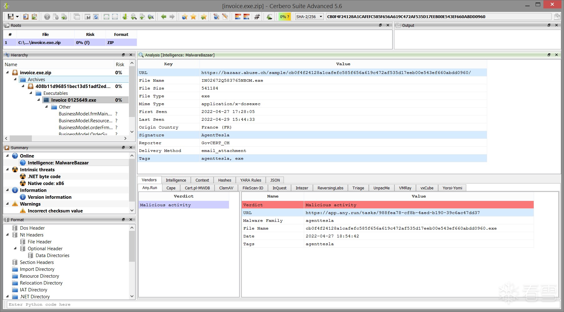 “MalwareBazaar情报”(MalwareBazaar Intelligence)软件包可让您直接从文件报告中即时获取来自 MalwareBazaar 的情报信息。该软件包以图形化方式直观展示 MalwareBazaar 报告的各个部分,包括所有外部扫描服务提供商的结果。