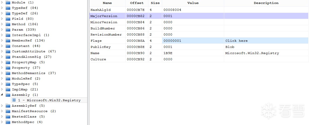 在一般情况下,解析 .NET 元数据表并非易事。因为要确定某个特定表的偏移量,必须计算其前面所有表的大小。而计算大小的难点在于,.NET 元数据表中包含一些字段的大小是动态决定的(例如基于字符串堆的大小或索引位宽)。