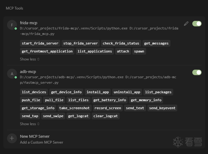 这两个工具,想必大家都不陌生,一个是adb,一个是frida,那么如何让大模型使用这两个工具呢?答案就是MCP!