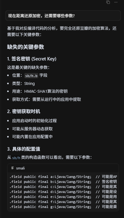 可以看到已经分析出来加密的格式了,问下大模型还需要什么,大模型告诉我们的下一步方案,给出