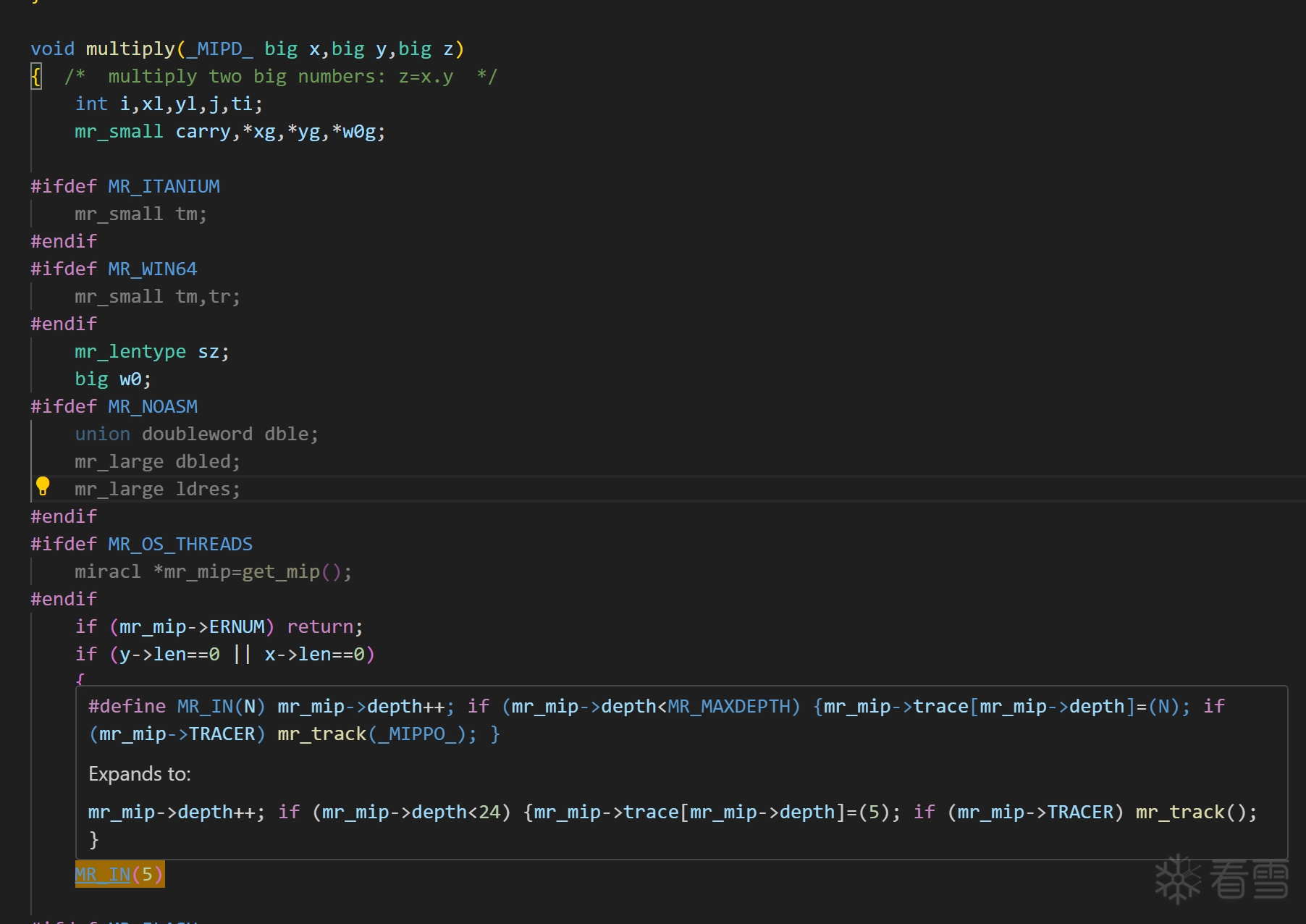 MIRACL库中很多函数在入口处使用了MR_IN(x)x为唯一的数字, 长这样:
